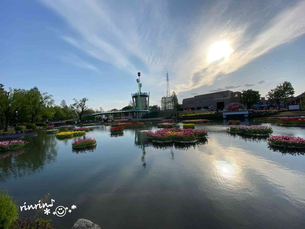 水上花壇のチューリップを撮りたくて、広角で撮ってみたら良い感じに撮れて満足✨