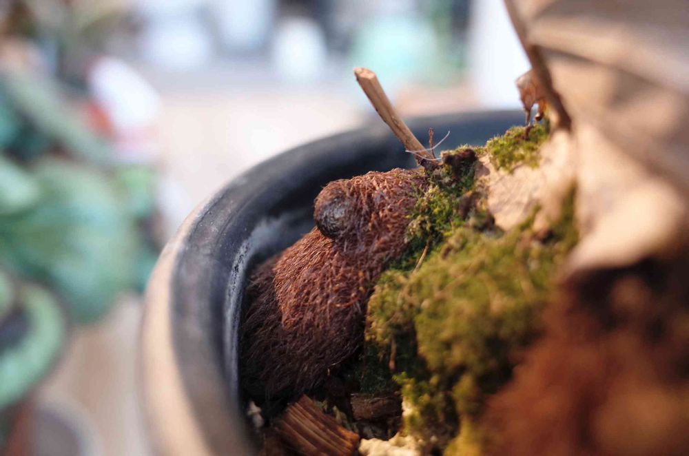 ドリナリアクエルシフォリアのゼンマイが出てきました!😭最低気温2度の日にベランダに出しっぱなしにして焦りましたが無事に芽を🌱出してくれました!よかった😊💓