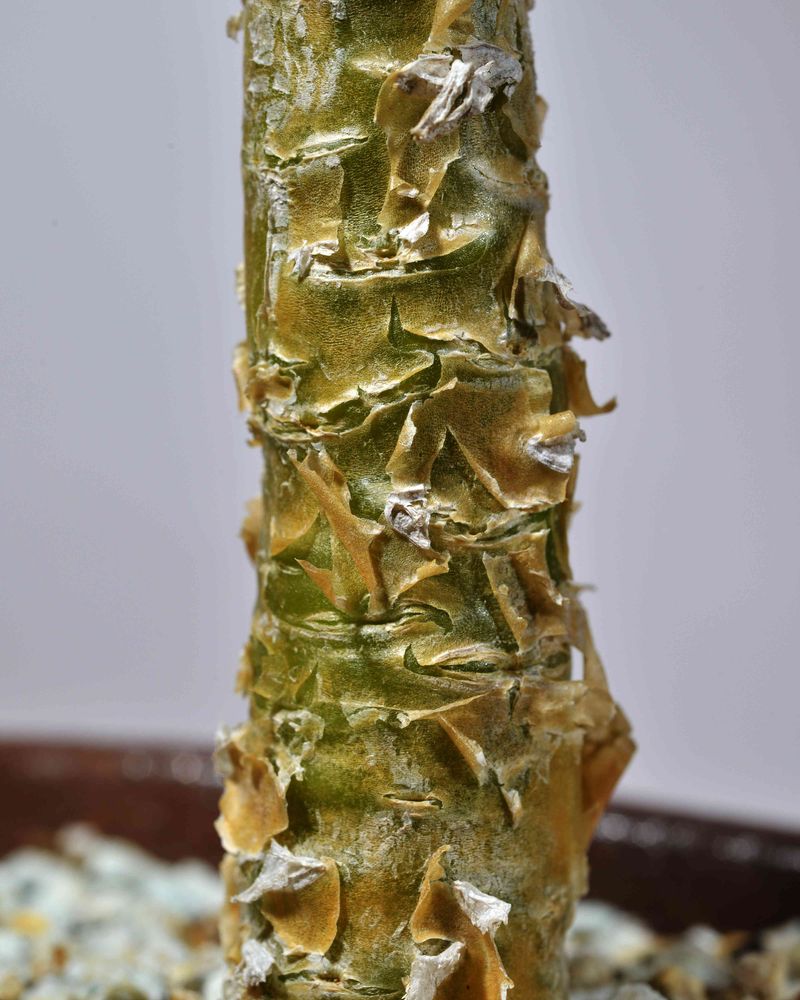 チレコドン・ラケモサスの茎の拡大。紙みたいな表皮をしていて、段々とはがれていきます。強い陽光を弱めるための仕掛けだと思われます。