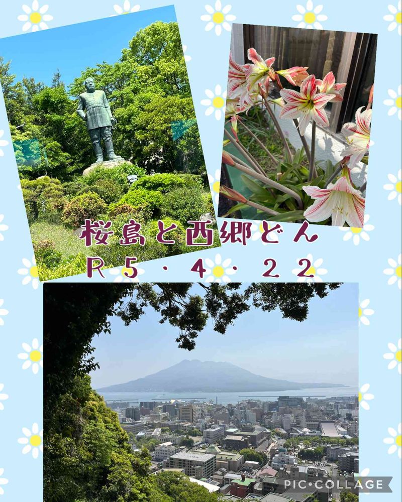鹿児島市内の城山展望台からの桜島と西郷どんです。少し靄がかかっていますが・・😥