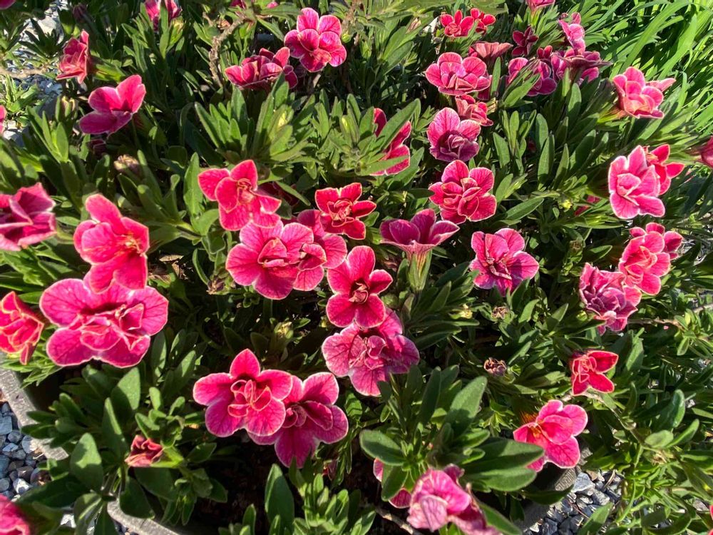 お疲れ様💕 2年目のカリブラコアさん、少し皆様に見てもらえるくらいに、ワサワサと咲いてます。こんもりとは、違いますがズボラな私には、丁度いい。🤣
