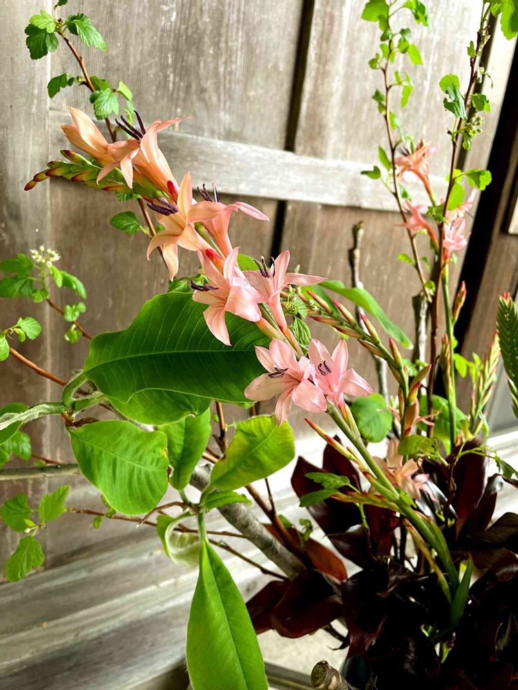 有名な方が生けたお花で、イキシアの原種は、珍しいんですよ!…と言っていた