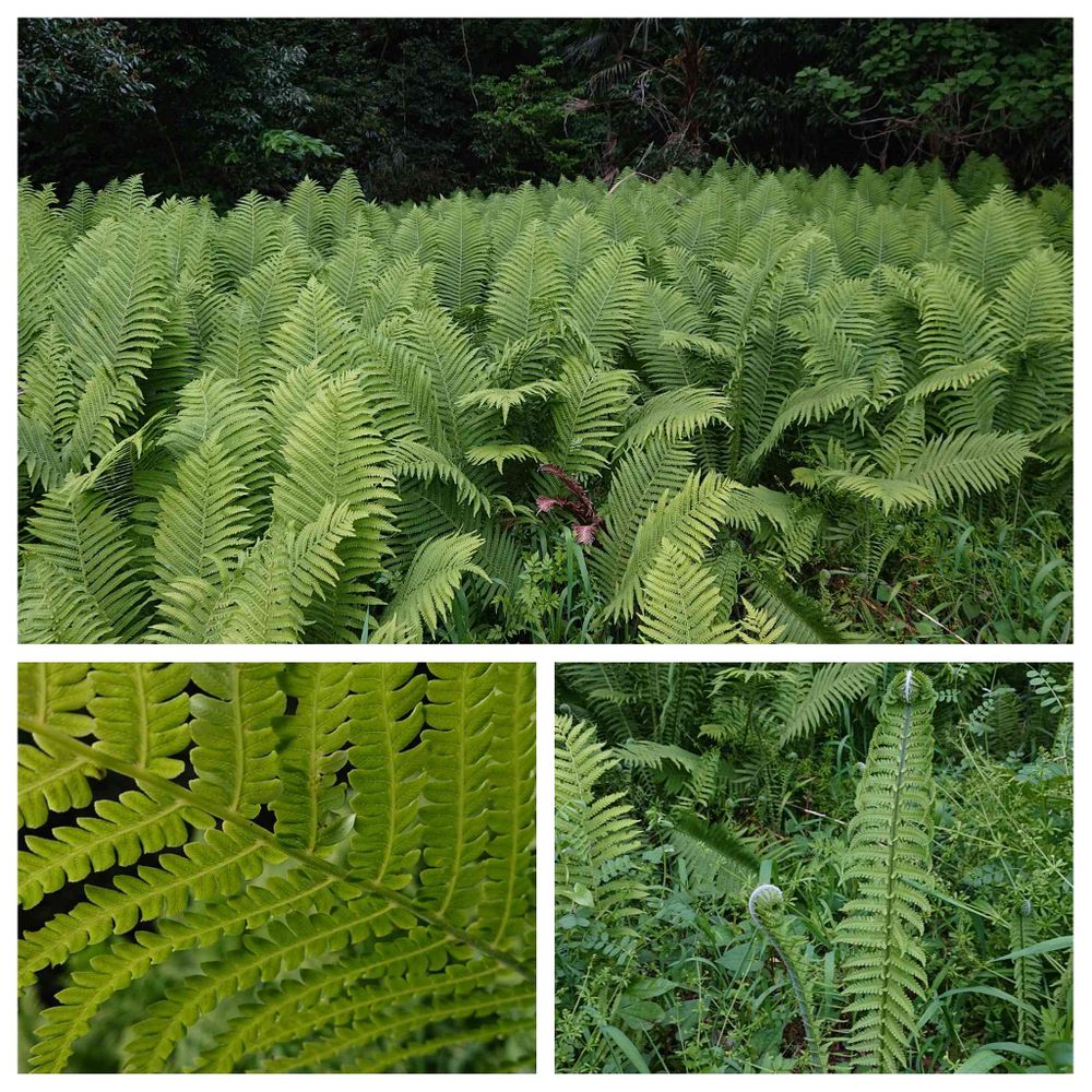 クサソテツの葉は二形性で、漏斗状に広がっているのは光合成で葉を作る栄養葉で、秋には胞子を作る胞子葉がでるはず🎵