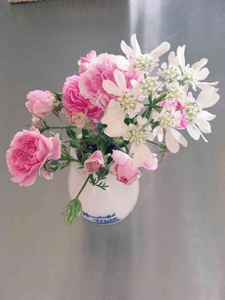 100均の花瓶もかわいい❤️お花と一緒で喜んでおります😁