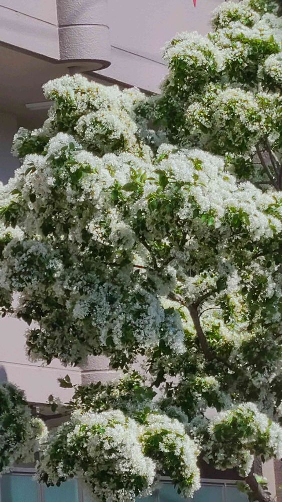 街路樹として並んで植えられてました。その全部が開花して風に煽られわさわさと揺れていました。