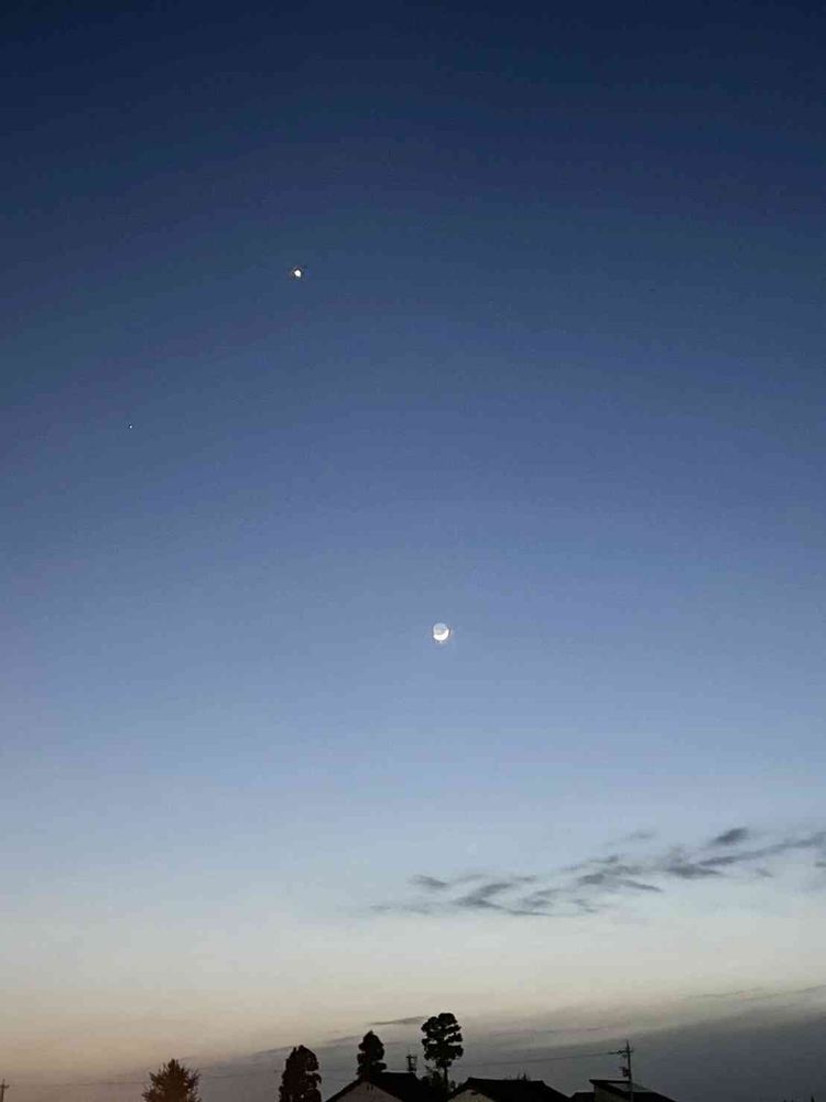 おはよ~😊 夕べは細い三日月、うちのあたりは、おぼろ三日月でした。