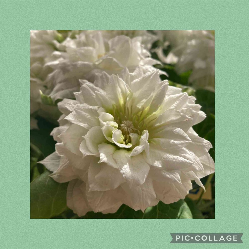 クレマチス エジンバラ、八重咲きでゴージャスなクレマチスさんですね🤍💚😍✨