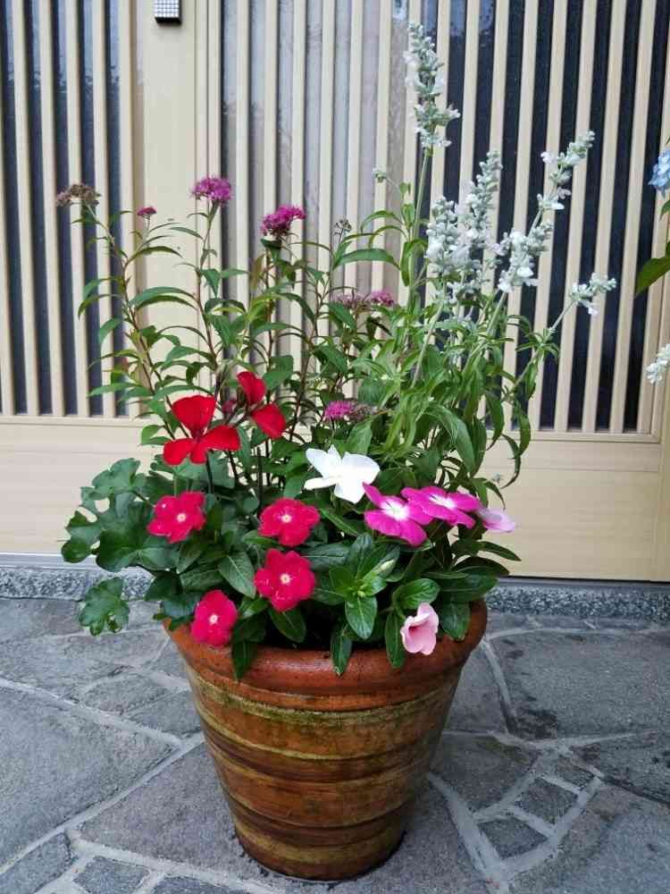 玄関,ニチニチソウ,ホワイトサルビアの投稿画像