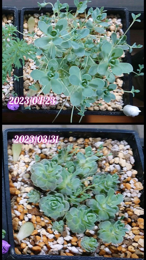 3週間で見る影もなく成長(徒長?)してしまった子持ち蓮華さん。子供の成長は早いな。