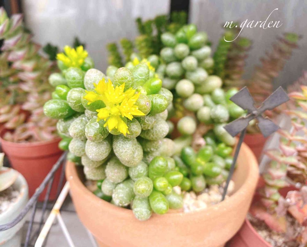 多肉 緑亀の卵🐢にお花が咲いています♪