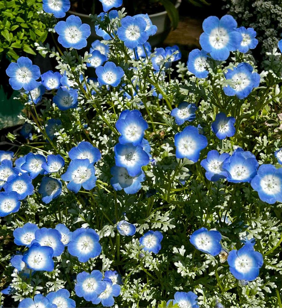 ネモフィラのこのコは葉っぱも独特でブルーも綺麗だよね〜💙💙💙💙💙✨✨✨でも、ネモフィラって成長が思ってた以上にモリモリで、他のとこに侵略するよね〜セリフラミンゴ負けてる〜🤭💚💕