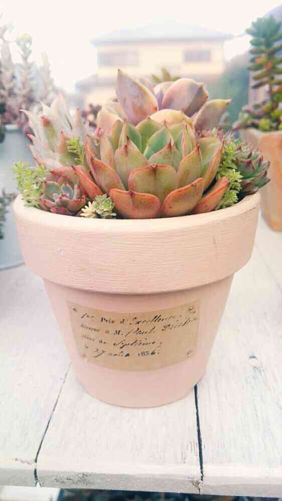 なぺ子さんの鉢に寄せ植えしたのがいい感じになってきたよー( *´︶`*)