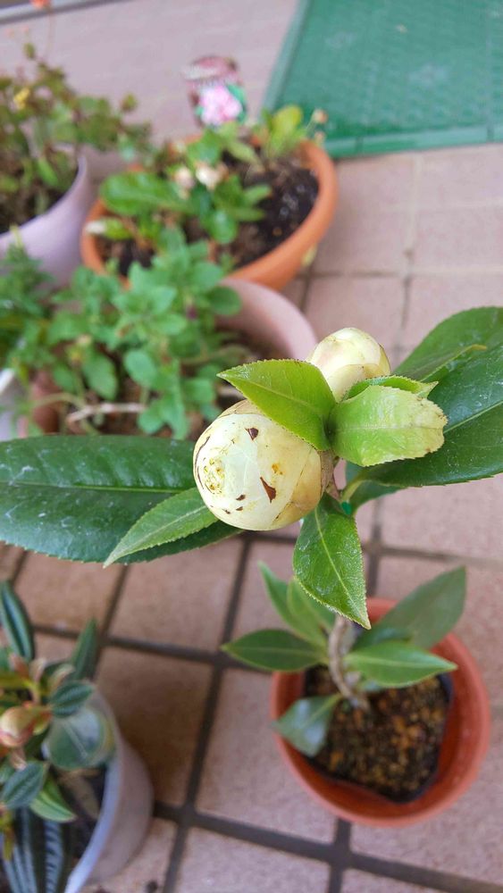 うちの椿も終わりに近づいているなか、園芸店でこれから咲きそうなのを見かけてしまった❗️
