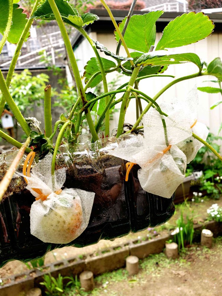よく見たら、ペットボトル栽培‼️凄い❗️意外とイチゴって根が張るから深い容器しか無理と思ってましたが、立派なものができるんですね👍️感服しました🙆