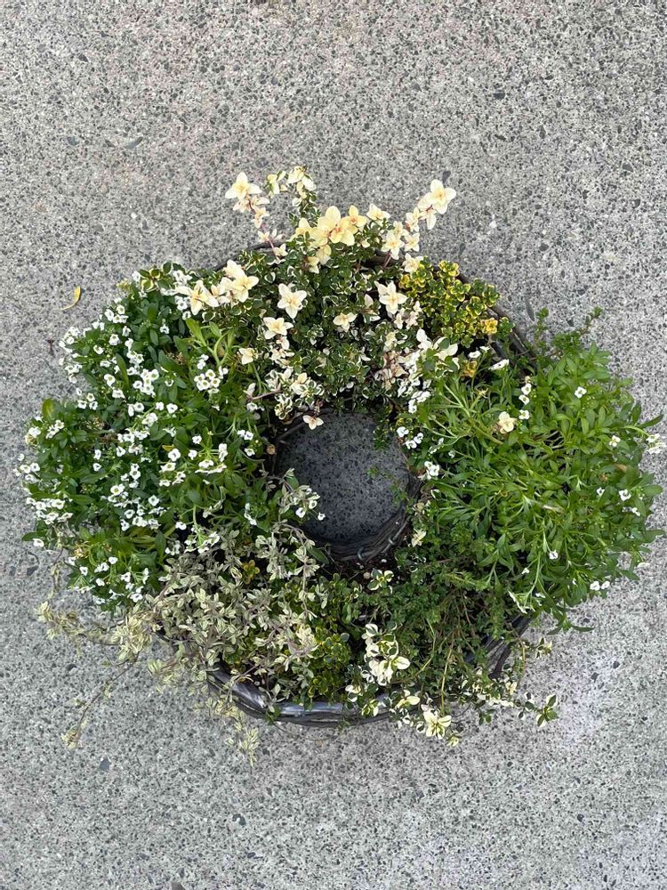 他の鉢のハーブ🌿をまた切って入れ足し続け。。😅全然リングにならないよ😂