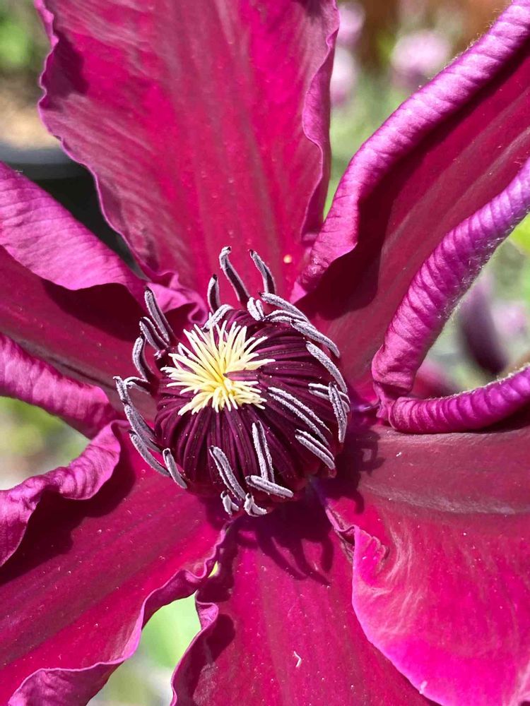 こんにちは🎶 花びらが開き切っていないけれど、見てね。💕 一重のクレマチスさん