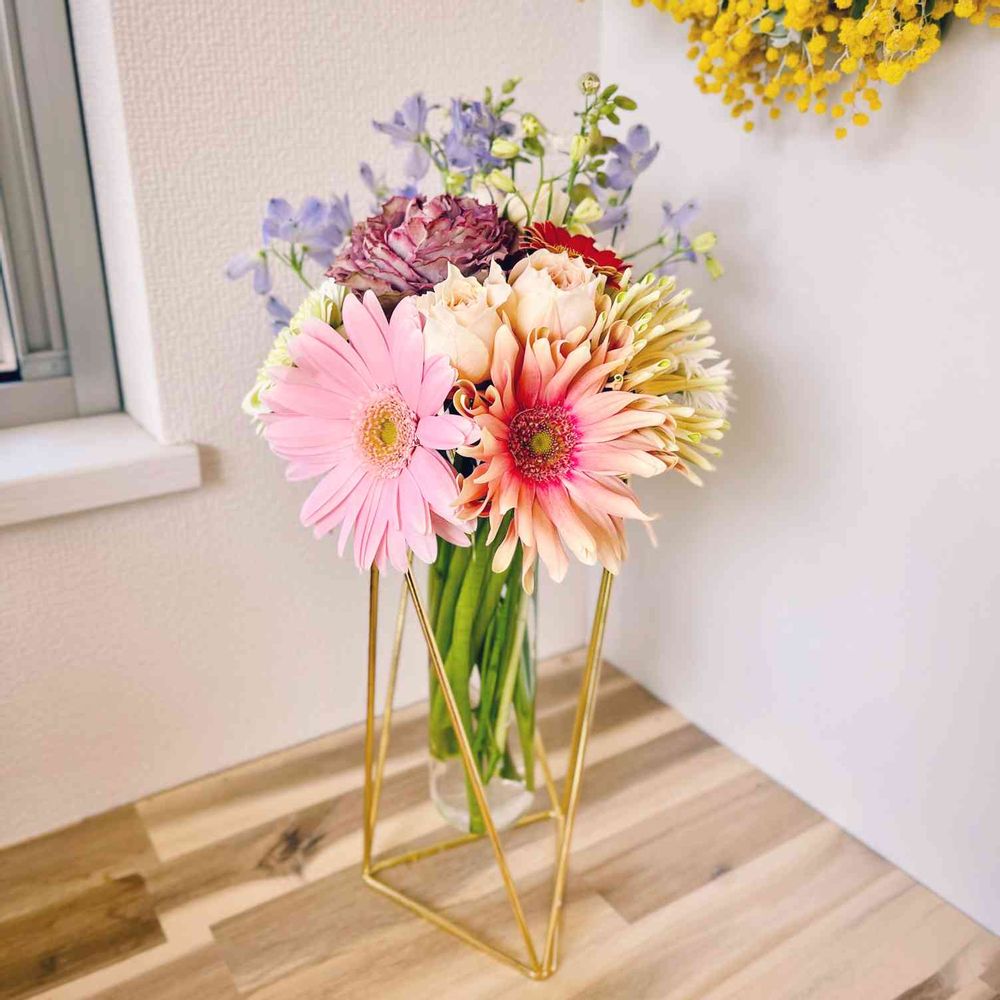 バラのガーベラメインのお花が届きましたが、さすがのボリュームで、玄関がとても華やかになりました♡