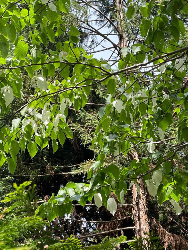 西東京の東大演習林の中です、ハンカチノキが満開です。