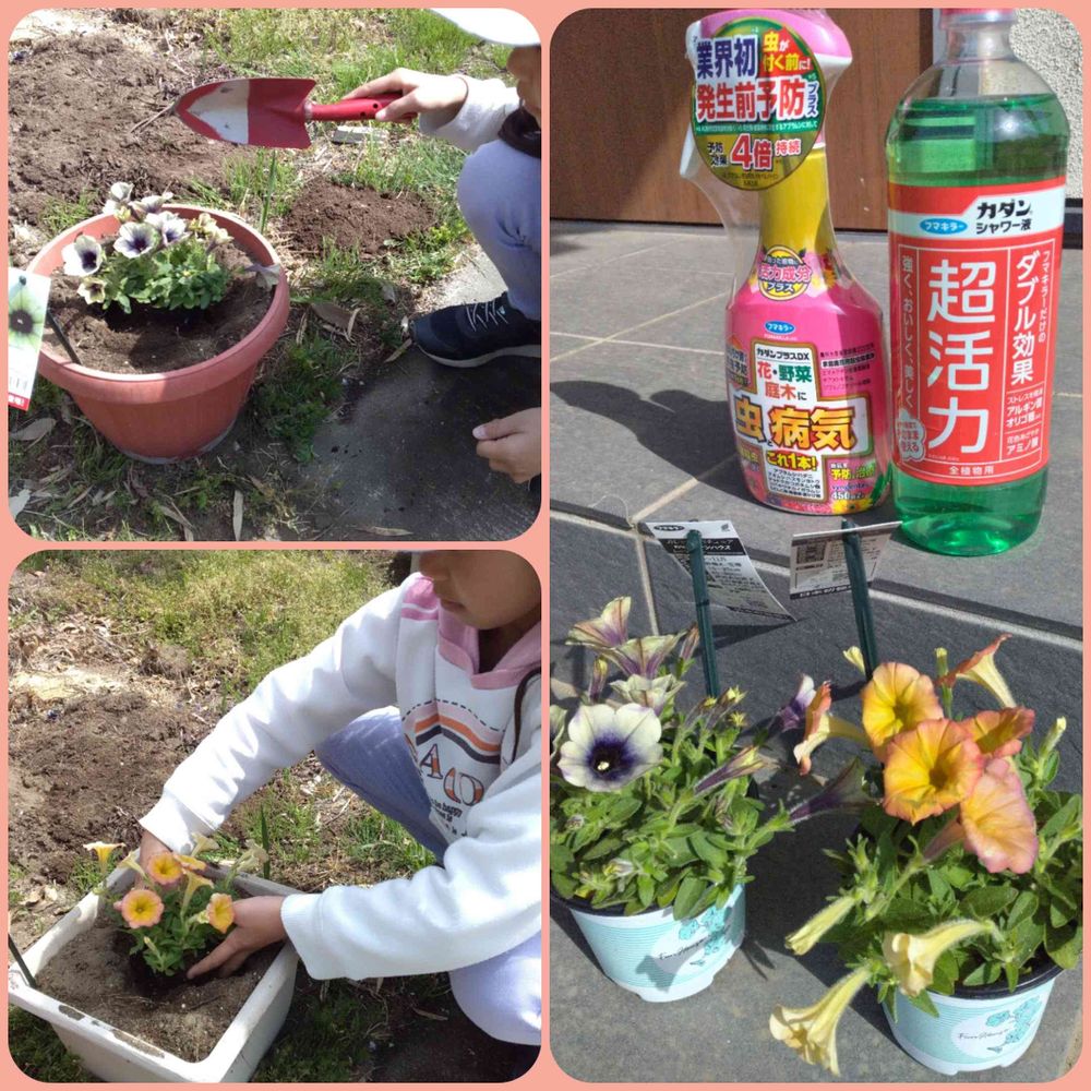 親子でファンハウスモニターに当選したので、早速2ポットを鉢に植え付けました🎶