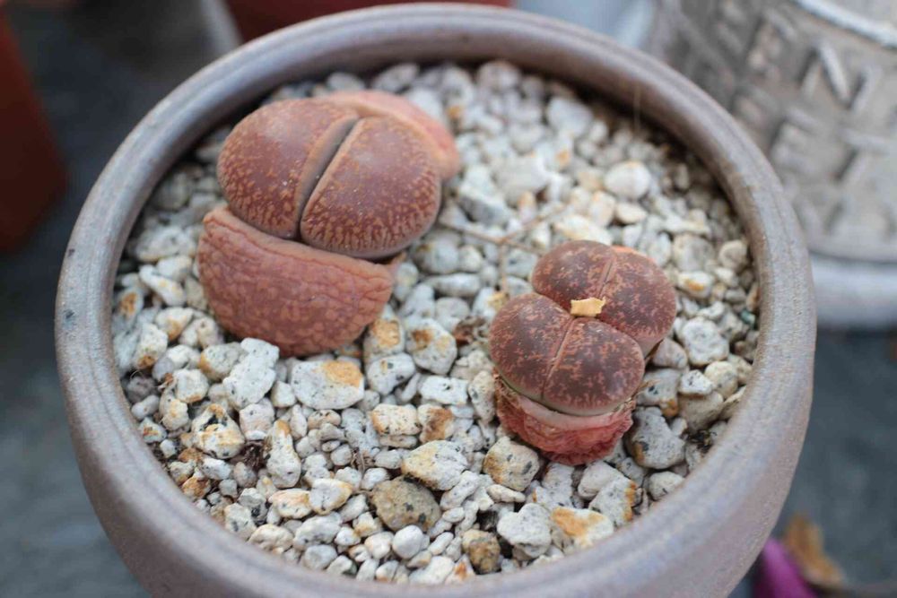 11月に花が咲いたリトープスが脱皮したら2つに分離していました。大きいほうは、1個のままだけど。