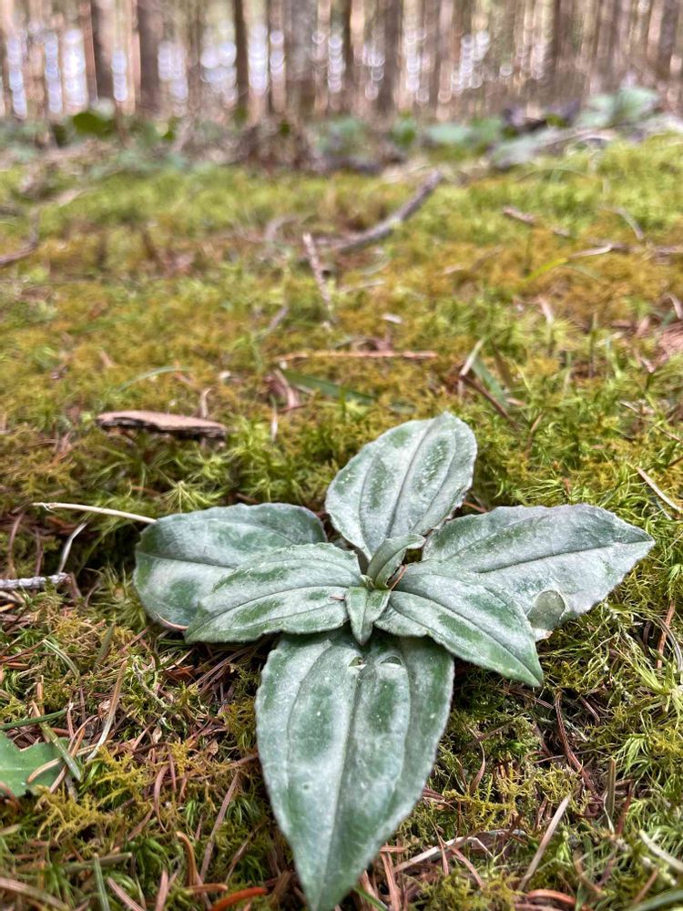 ミヤマウズラはこんなにはっきり深い三行脈にはならないし、白い網状脈はもっと鮮明なので違うだろうと思います。たぶんリンドウ科の何か、ツルリンドウあたりのロゼットではないかと。