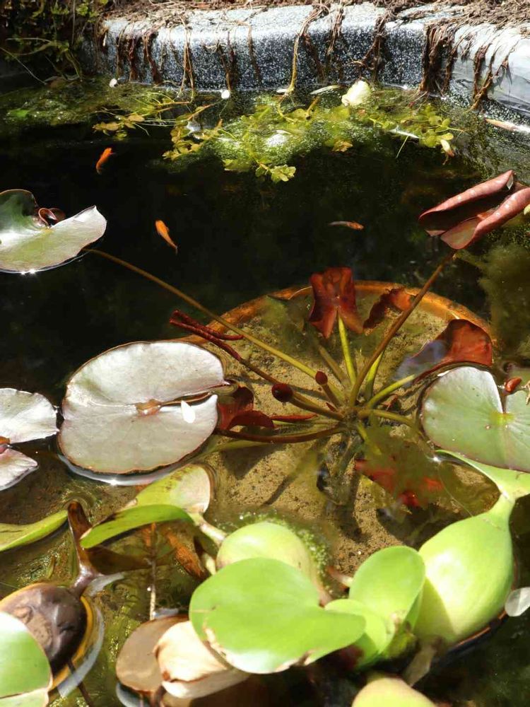 睡蓮が咲く庭のビオトープ