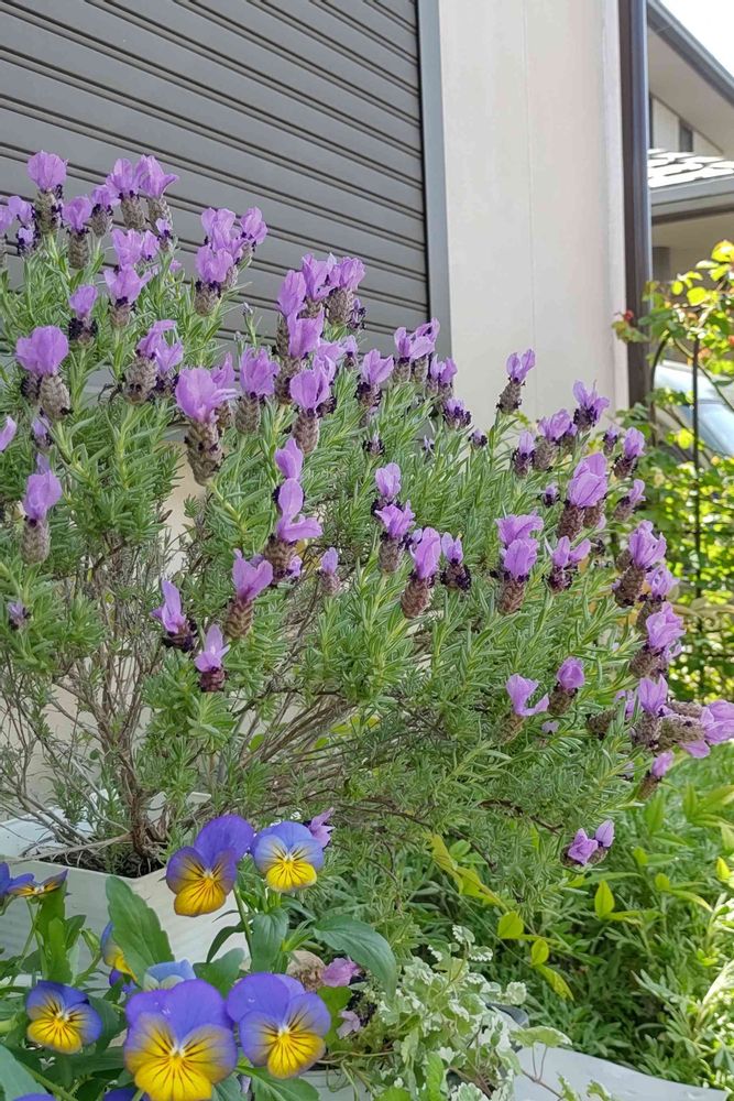 鉢の大きさの割に、ラベンダーが大きくなったので、全体のバランスが悪く、よく鉢ごと倒れてます😅💦