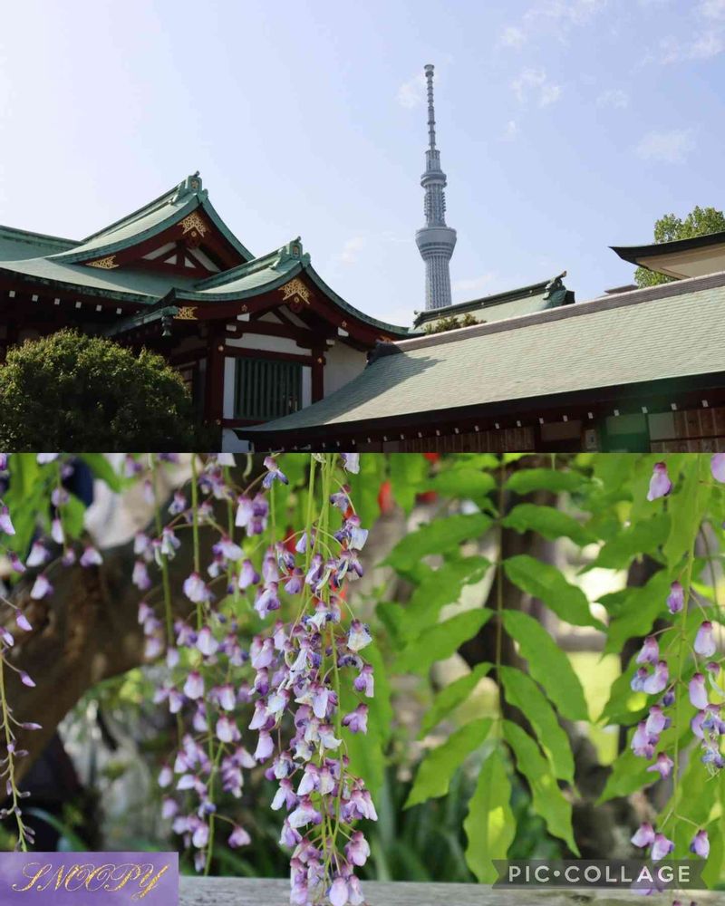 亀戸天神様とスカイツリータワーと藤の花💜✨