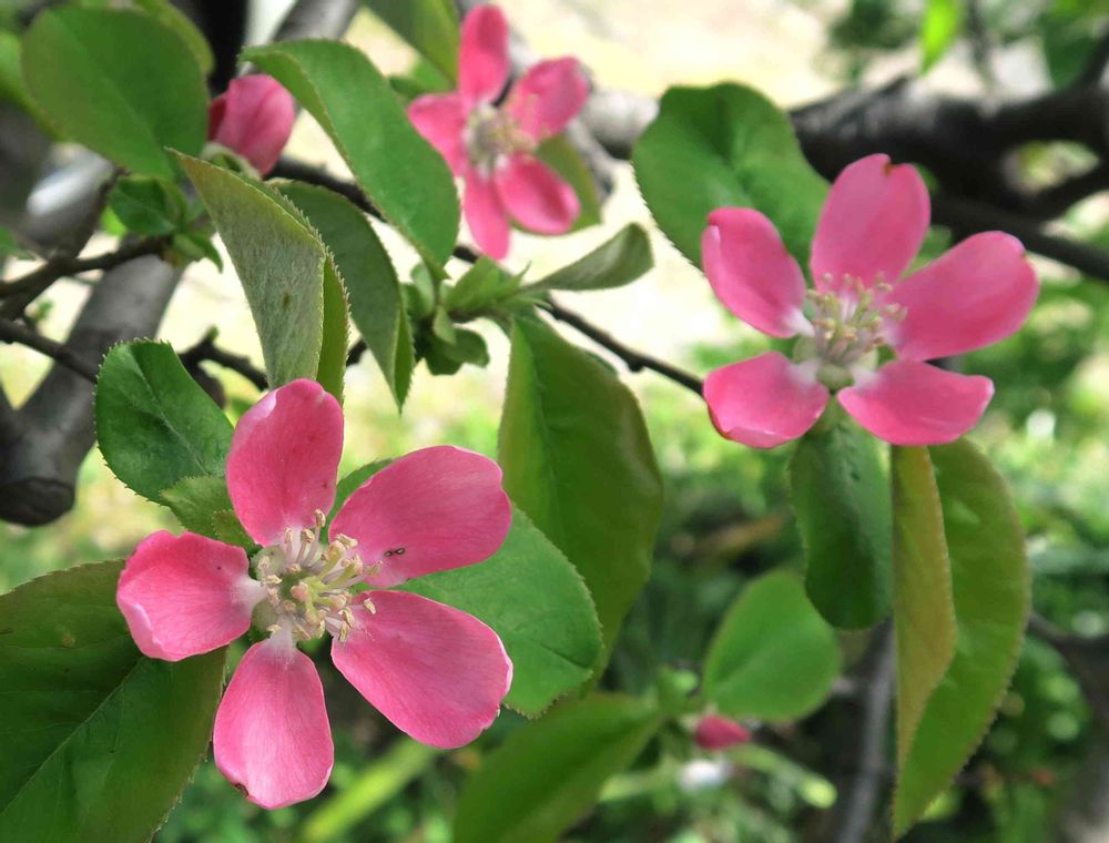 庭のカリンに赤い花が沢山咲きました🎶🎶😄
