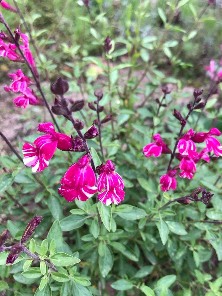 ちらほらと咲きはじめているチェリーセージ🍒 マーブル模様の子が一番最初に咲きはじめています。