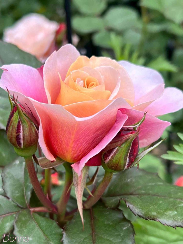 濃いめのオレンジ色の蕾が開いてピンクに変わるまで楽しめる薔薇です🧡💗