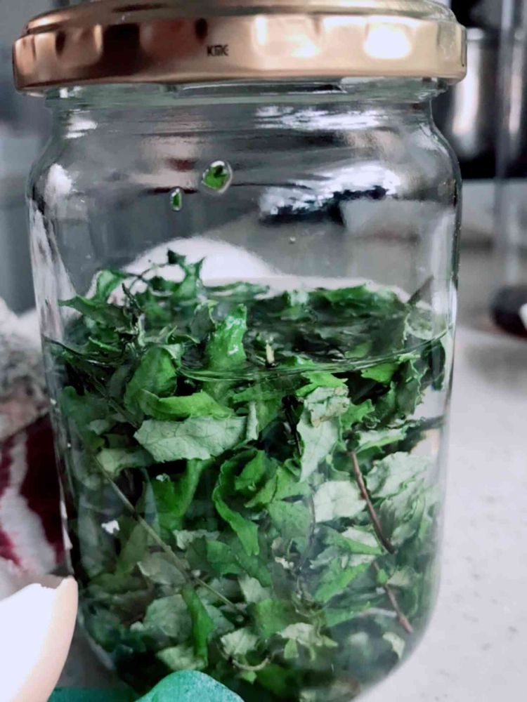 山椒の葉と焼酎で、痒み止めを作りましたよ。