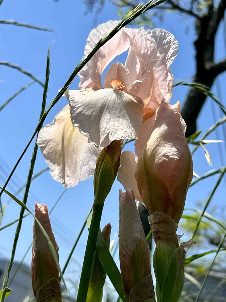 ほんのりピンクがかった美しいジャーマンアイリスですね。