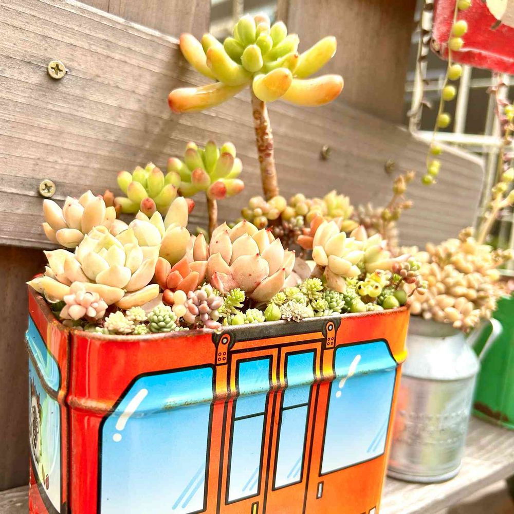 この寄植えも冬に縮こまってたのが春の水やりでイキイキと復活した子☺️