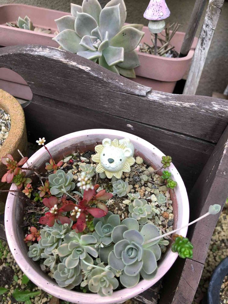 ほったらかしの鉢ですが、子持ち蓮華さん春になるとちゃんと目覚めます😊🌸