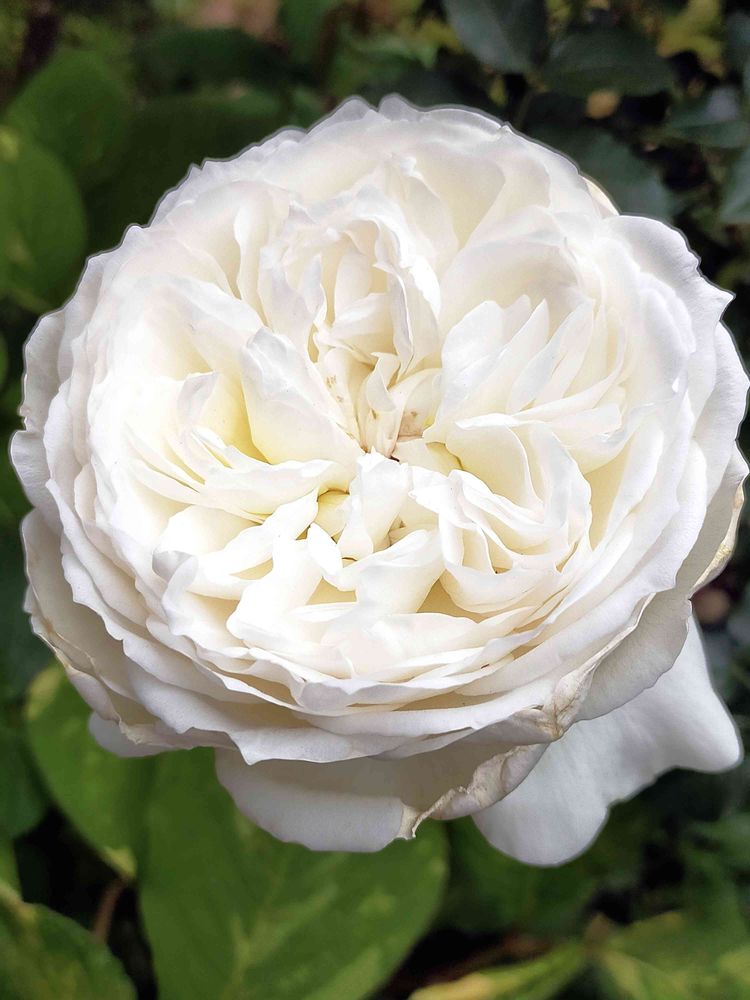 純白で花弁が幾重にも重なります。咲き進むと中心がピンクになるそうです。