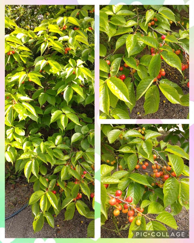 お庭には、桜🌸、サクランボ、梅、松等植えてますが、ちょうど、庭で草刈りしてる息子が、さくらんぼ🍒甘いよ~と主人に勧めまして、食べたら!うん!甘い!になりました!私はシャメに