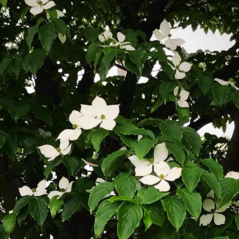 おはようございますございます。「山法師」GSで見かけて知ってましたが、近所の遊歩道で見つけました。白いところは花でなくてガクだそう。実は秋くらいに熟してんまいらしい、う〜ん、食してみたい。今からツバつけとこ。