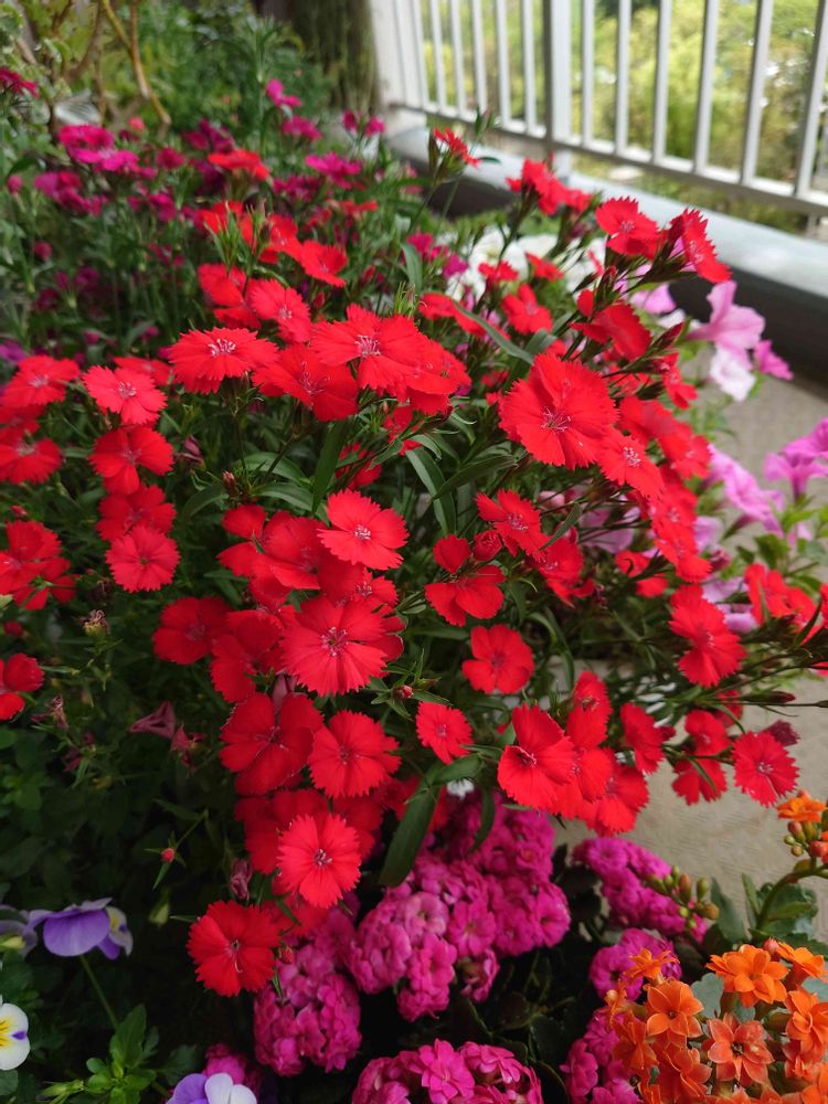 赤と濃いピンクとカワラナデシコも咲いてきました🌿💕
