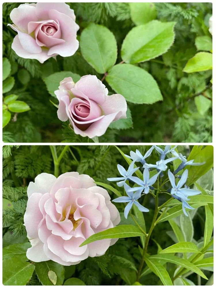 ラックスさんの広い庭,チョウジソウ,薔薇 シルバークラウドの投稿画像