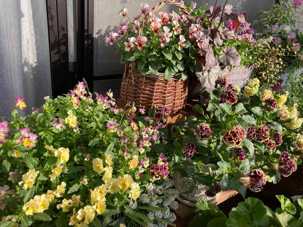 徒長ぎみではありますが、まだまだパンジービオラが元気です😊
