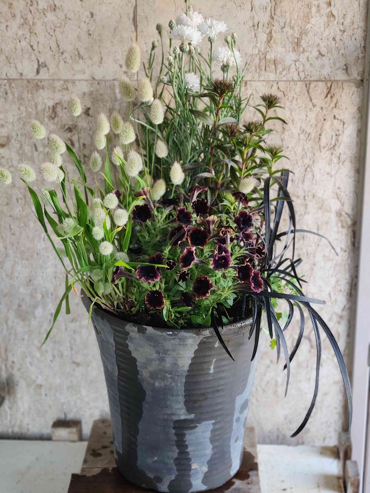 お連れしたミニペチュニアに、マイフラッグコレクションのダイアンサスを入れて、久々に寄せ植え作りました。