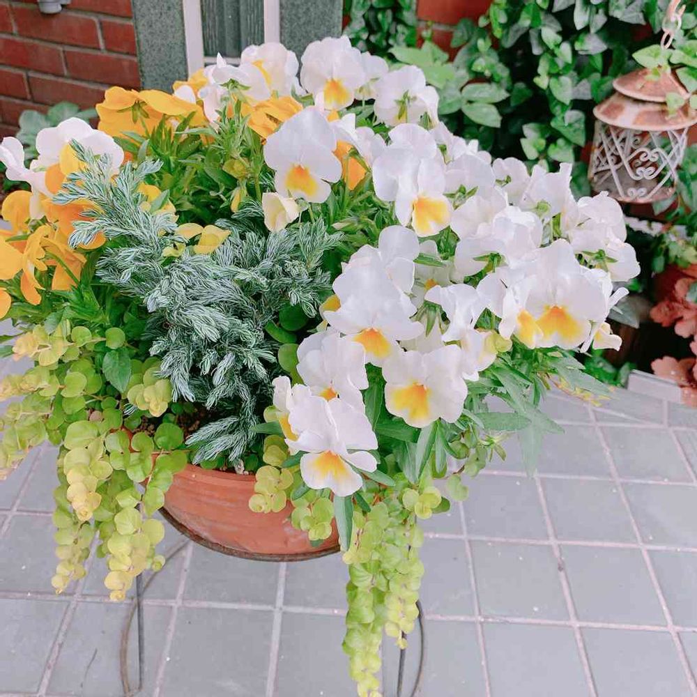 よく咲くスミレは大きくなるから、ゆったりスペースをとって寄せ植えしたのがよかったのかもしれません( ˶ˆ꒳ˆ˵ )
