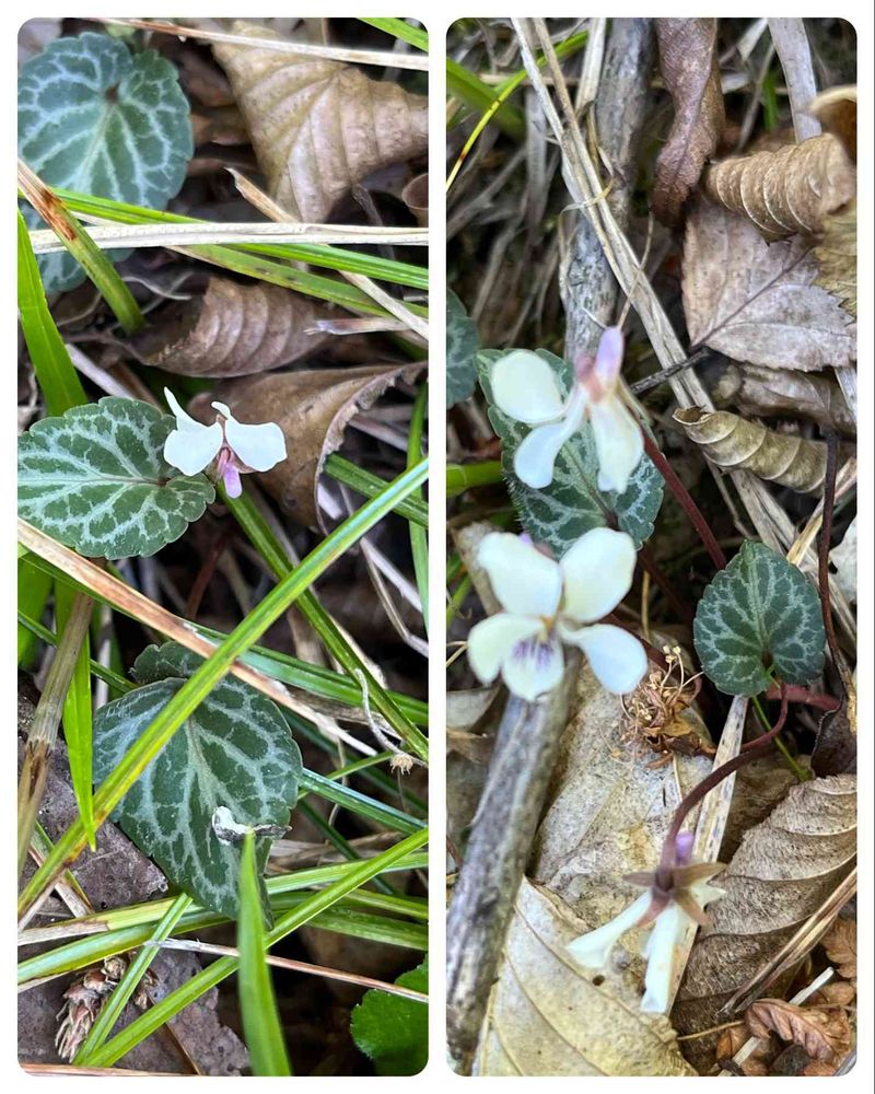 標高200メートルの場所なので、2000メートル級の斑入りフモトスミレではありませんとしましたが、フイリフモトスミレのようでした