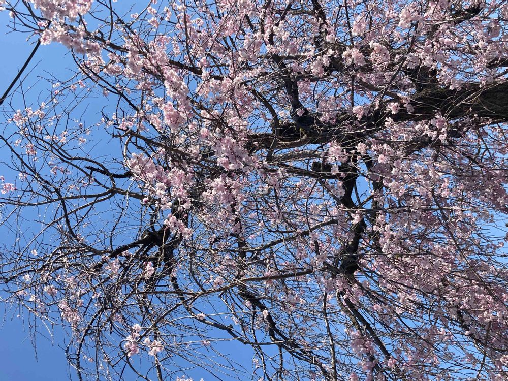 枝垂れ桜ですね🌸伸び放題自然の流れがただただ美しい、勢いのある桜を見せていただきありがとうございます♪😊