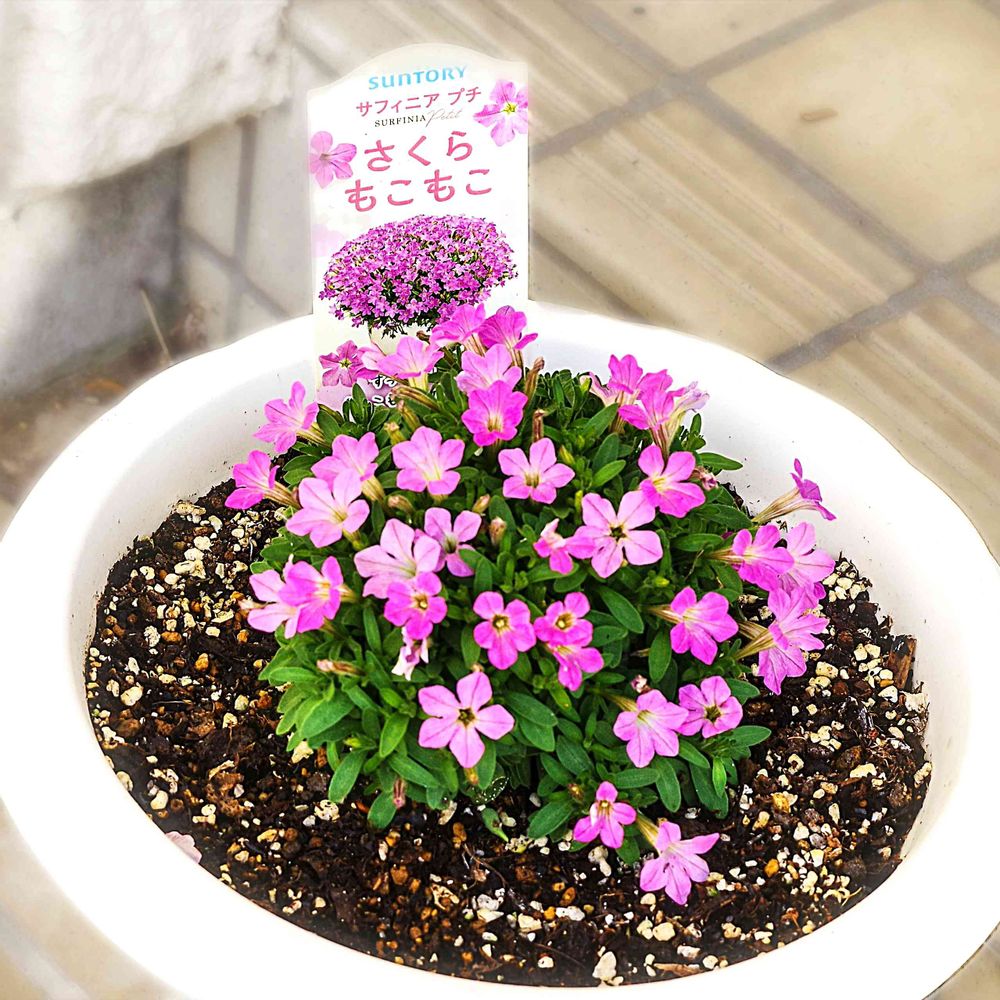 サントリーフラワーズ サフィニアプチ さくらもこもこが可愛く咲いています💞このお花は春の新品種なんです🌸