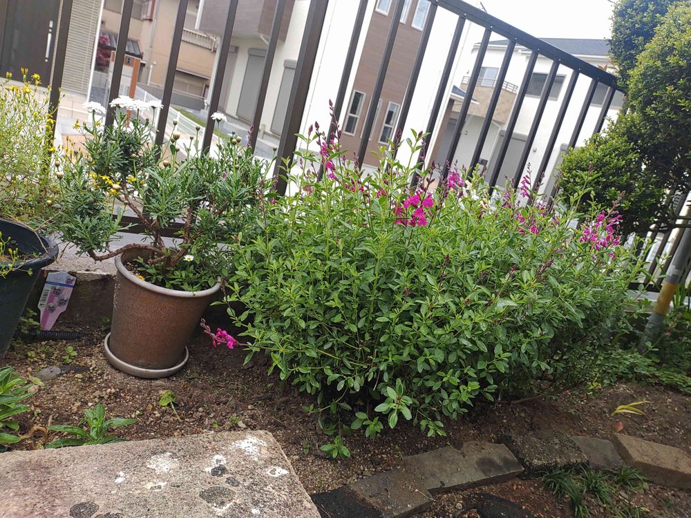 チェリーセージにせっせと液肥を与え、よくしげっているので気がつかなかったけれど、隠れて雑草がもりもり育ってた!