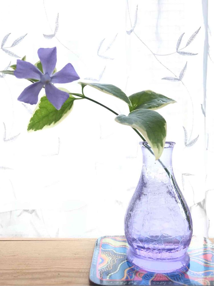 小樽のガラス工芸店で出会った時から、一輪挿しによさそうと思いました。💜💙