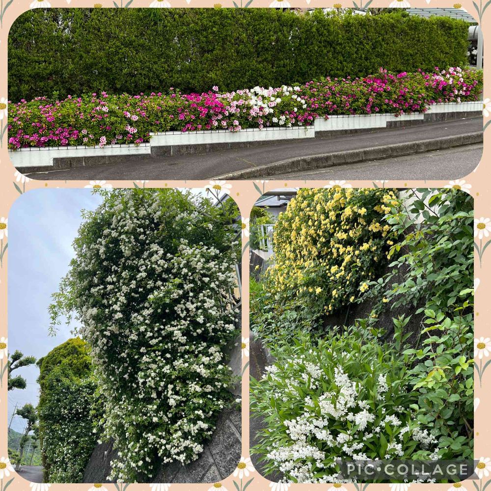垣根は何の木でした?ツツジも緑の垣根も、綺麗に整えられていて、道往く人も気持ち良いことでしょう❣️
