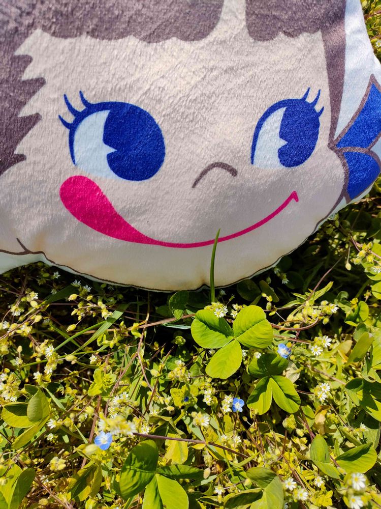 今日は、天気も良かったので、ペコちゃんクッションも、外に出せました。🤭